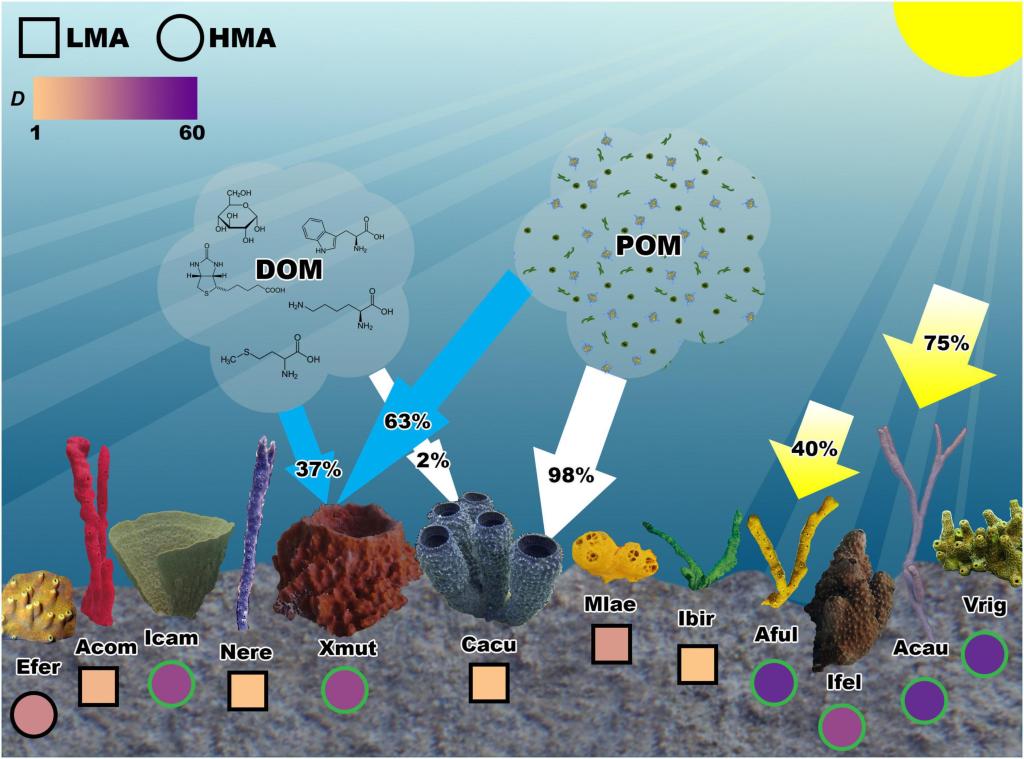 Marine sponges rely on a variety of nutrient sources including particulate and dissolved organic matter, solar irradiance, and inorganic nutrients.